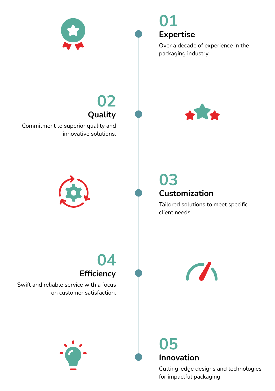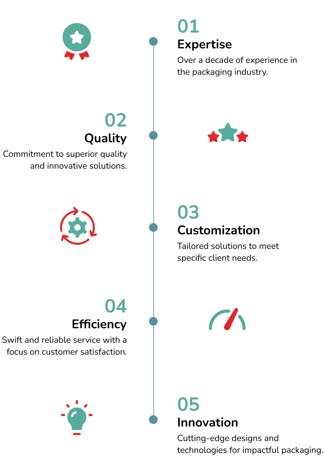 Our vision is to be the leading packaging solutions provider, renowned for our excellence in design and service. We aim to set new industry standards through creativity and dedication, driving success for our clients and becoming their preferred partner in packaging solutions.